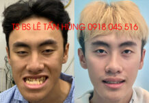 Hình 5: Tình trạng cắn hở đã khỏi, các răng cửa hàm trên bớt chìa ra phía trước, góc mặt phẳng khớp cắn tăng, xương hàm dưới và cằm được thu ngắn ngay sau mổ.
