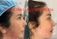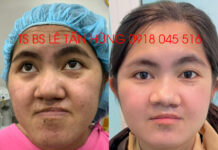 Hình 4: Vùng quanh mũi đã đầy đặn hơn, Khuôn mặt đẹp và hài hoà hơn trước mổ. Cằm được thu ngắn và bớt chìa mặt dù không có bất kỳ can thiệp nào trên cằm trong lúc phẫu thuật.
